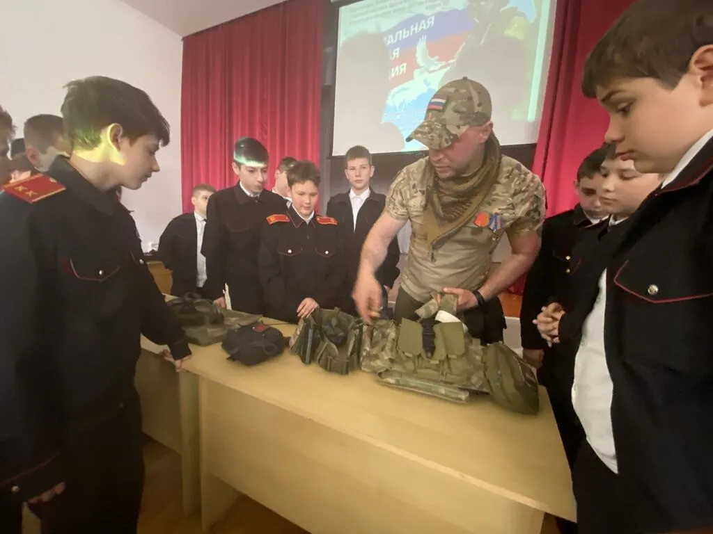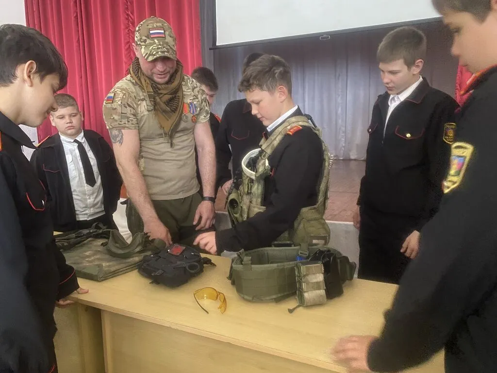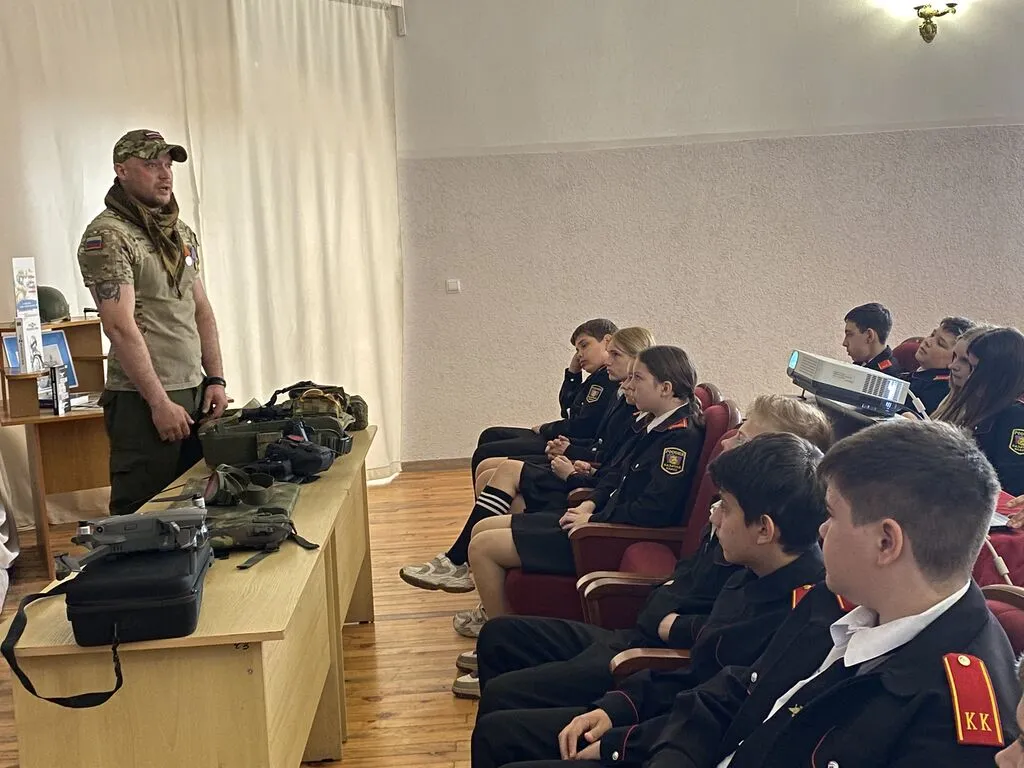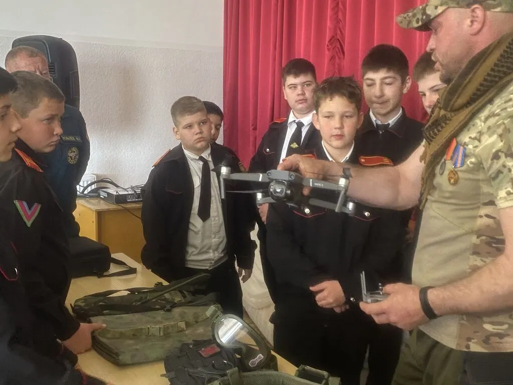 Ребята увлеченно слушали и задавали вопросы о работе дронов, о первой медицинской помощи и с интересом рассматривали элементы экипировки современных военных.